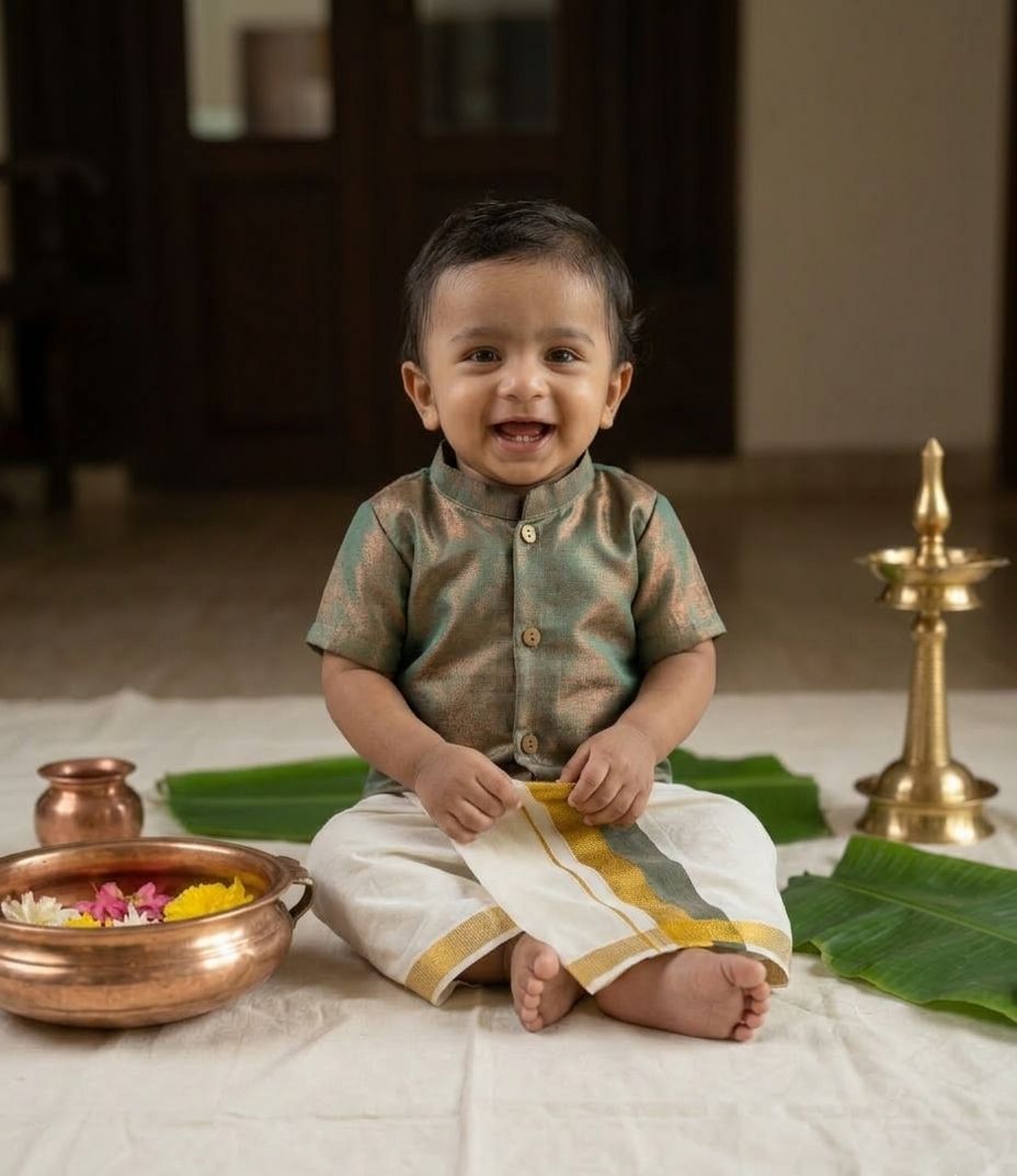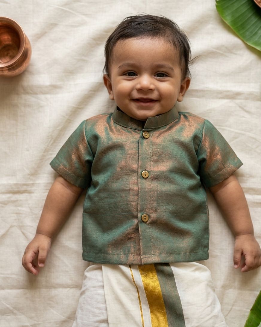 Baby Boys Shirt And Velcro Dhoti VSB05
