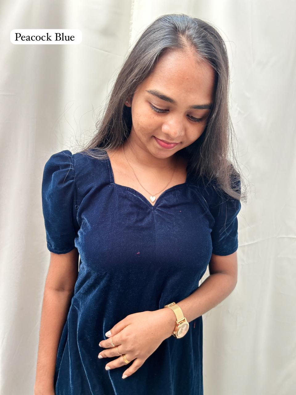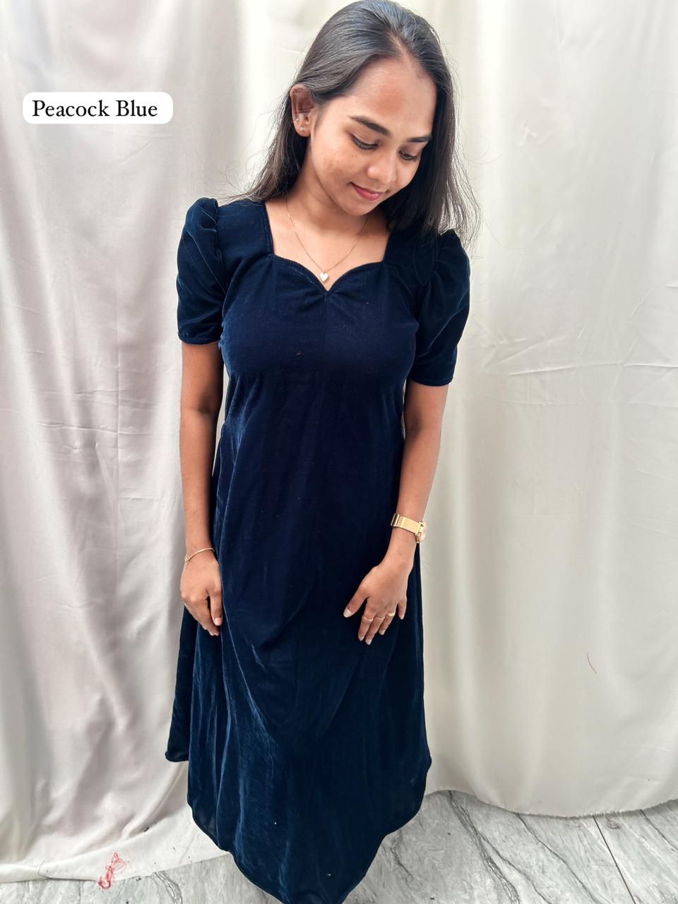 This Velvet Elegant Dress is crafted from soft, premium-quality velvet that gives a luxurious and graceful look. The frill sleeves add a stylish touch, making it perfect for parties, celebrations, and evening outings. Designed for comfort and elegance, this dress ensures a smooth and rich feel while maintaining a modern and feminine silhouette. Whether you’re dressing up for a special event or simply want a chic outfit, this velvet dress is a perfect choice.